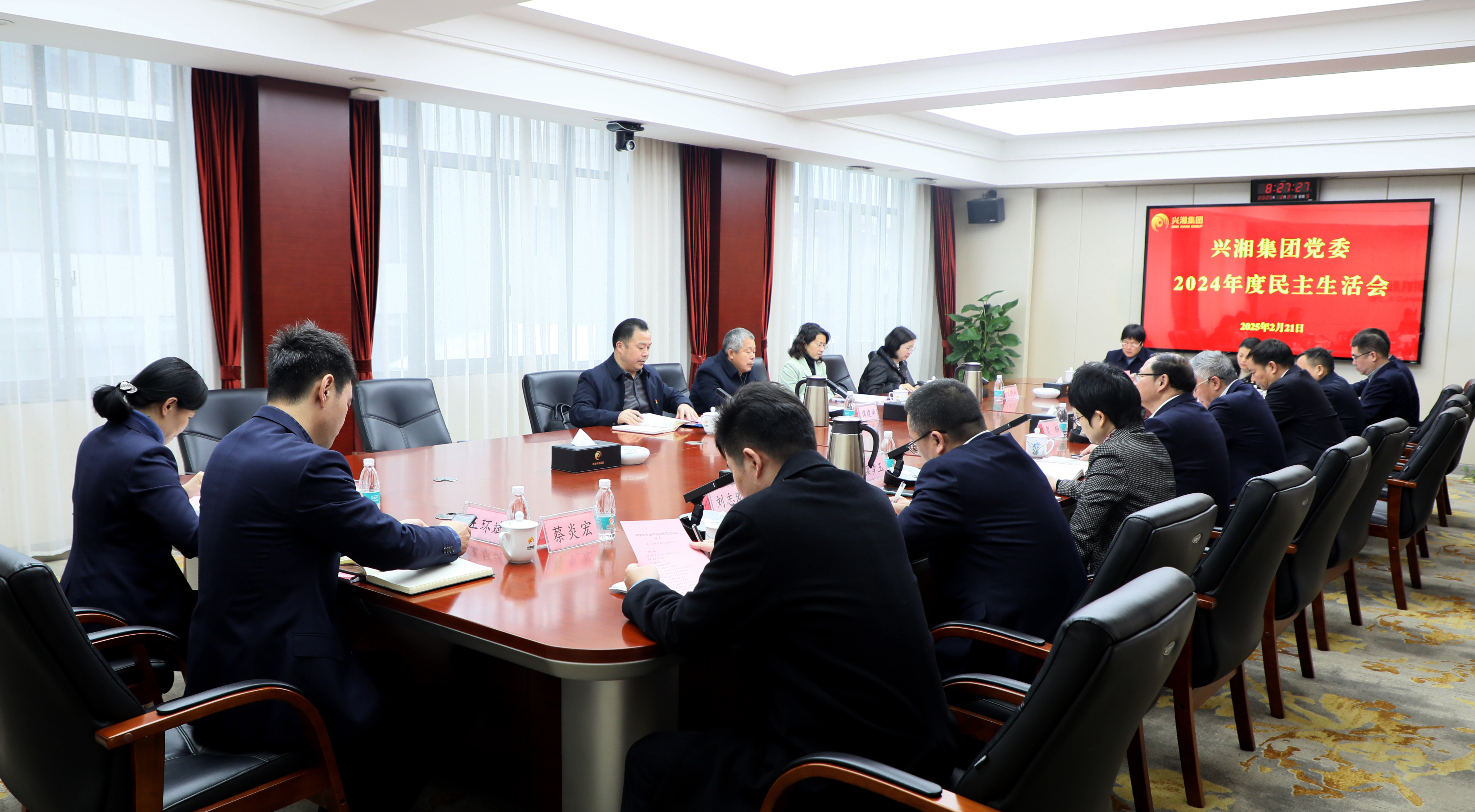 2月21日,興湘集團黨委召開2024年度民主生活會,省國資委一級巡視員譚建華出席并作點評講話。集團黨委書記、董事長賀柳主持會議并作表態發言。