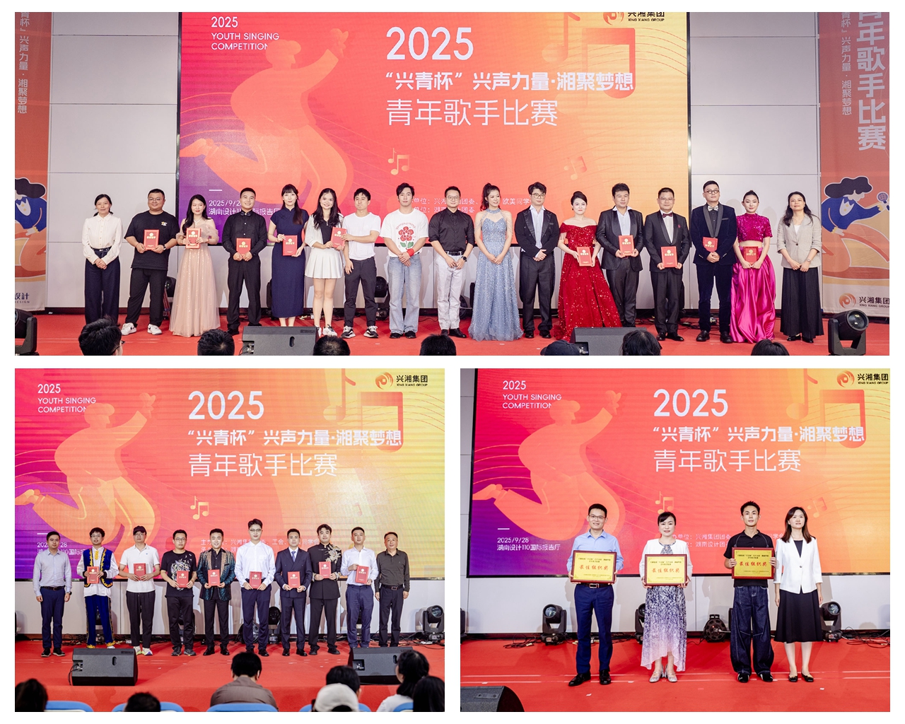 湖南設計青樂團組合(譚子俊、王傲梅麗、左淳瑩、宋鑫、凌晨)、湖南低空袁鑾玲、集團總部興湘Young組合(歐陽喆浩、唐帥)、湖南設計阡陌之聲組合(李歡、金菲、付業偉、劉佑杰)、興湘資產興耀和聲組合(湯泳、張成、歐陽宇星)、湘安實業劉恒、粉冶中心晨熙起振組合(張振、胡煕涓)獲“十佳青年歌手獎”,華升股份陳鑫星等8組選手獲優秀獎。湖南設計、湖南人才、興湘資產3家單位獲“最佳組織獎”。